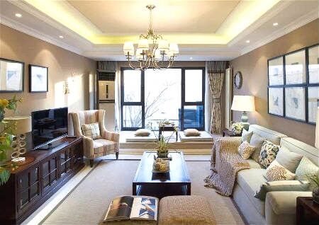地面使用一种材质一种柔和相似的颜色处理,客厅上会有较好效果。走入家门,便能感受到一室温馨,可以增加人们对家的向往。