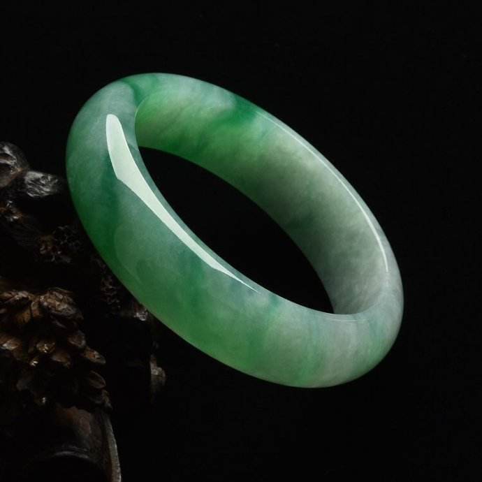 老年女性的气质沉稳内敛,行事作风比较稳重、保守、传统,因此佩戴的玉手镯也是自成一类。首先,在形状上,玉手镯的条子可以宽厚、庄重一些,以便体现其平稳、谨慎的风格。其次,玉手镯的颜色色调不需要光鲜亮丽,而应该深沉一点,给人平和、安宁的感觉。但是,如果是气质非常富贵雍容的女性,则可以佩戴颜色浓郁艳丽的玉手镯以体现其高贵华丽的地位。再者,一般中老年女性佩戴的玉手镯的种水不需要达到极佳的状态,只要能体现其深沉庄重的特点,种水稍差一些也是可以的。