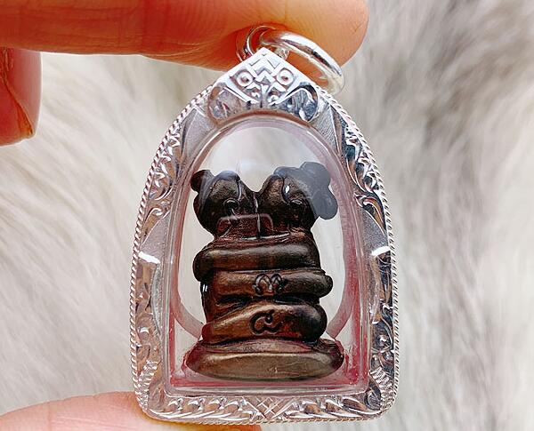 九尾狐仙牌是阿赞明的倾心之作,使用上多种湾(摧情树根和情降花)作为主料,背面有两支符管,8粒宝石(彩石)象征着富贵好运的意思和一瓶人缘鬼油。