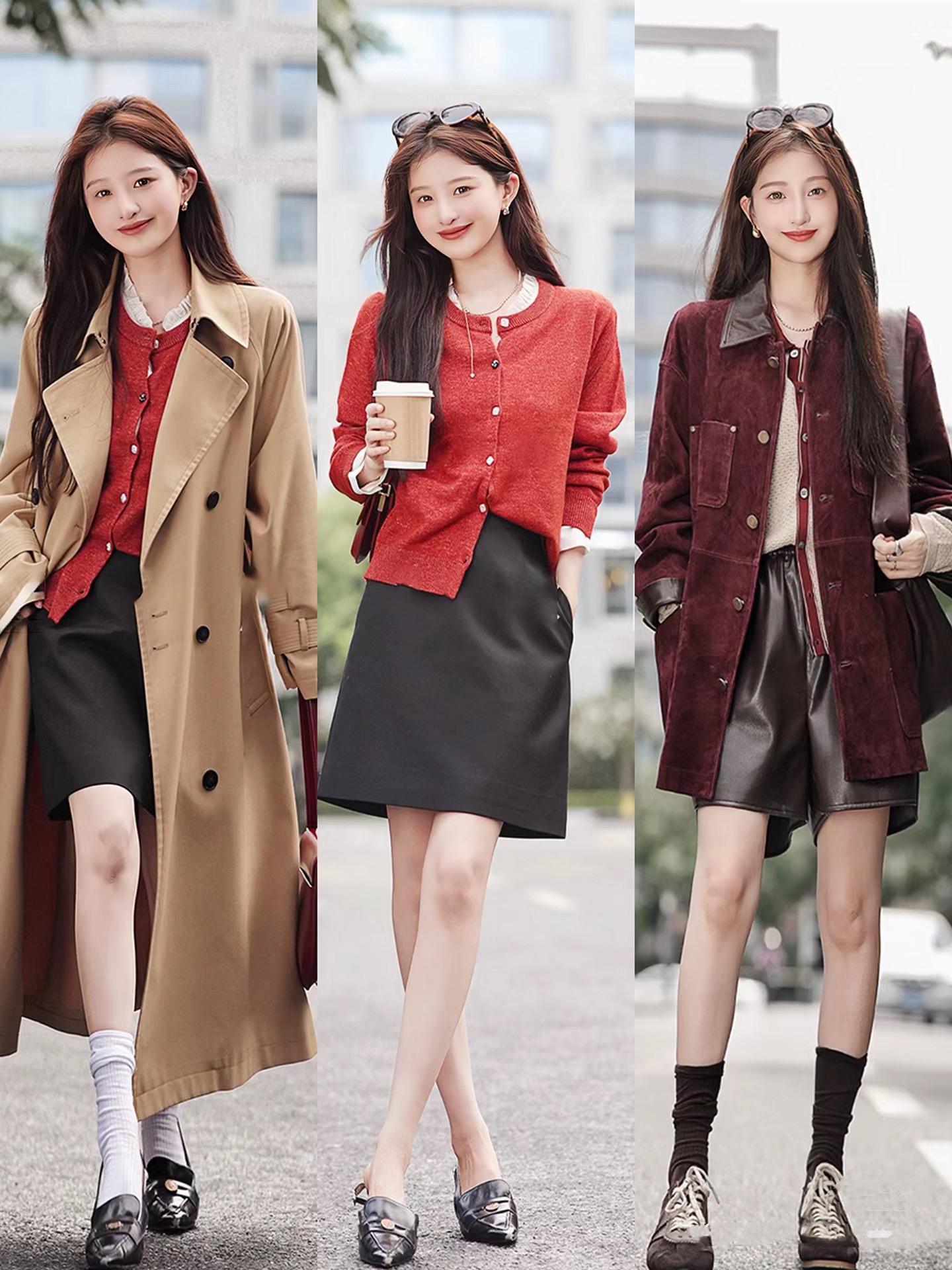 安可拉红的针织衫、打底衫、半身裙,在这个秋天都比较适合。有点复古的安可拉红,让我们的穿搭更具腔调感。