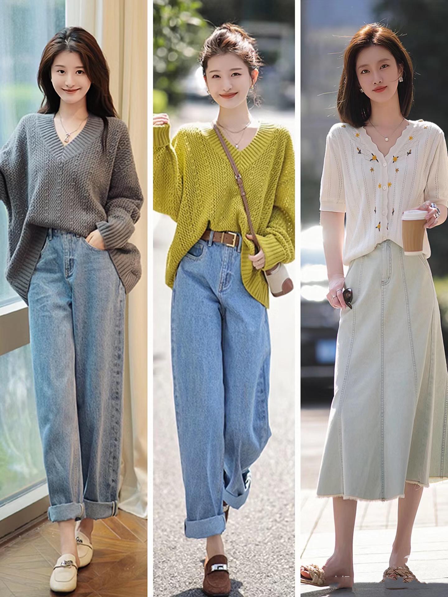 在美好的秋天里,拥有无限的期许。宽松的针织衫、就是秋天最慵懒的写照。宽松针织衫配牛仔老爹裤,休闲自在,塞衣角的搭配方式,自然又显高。