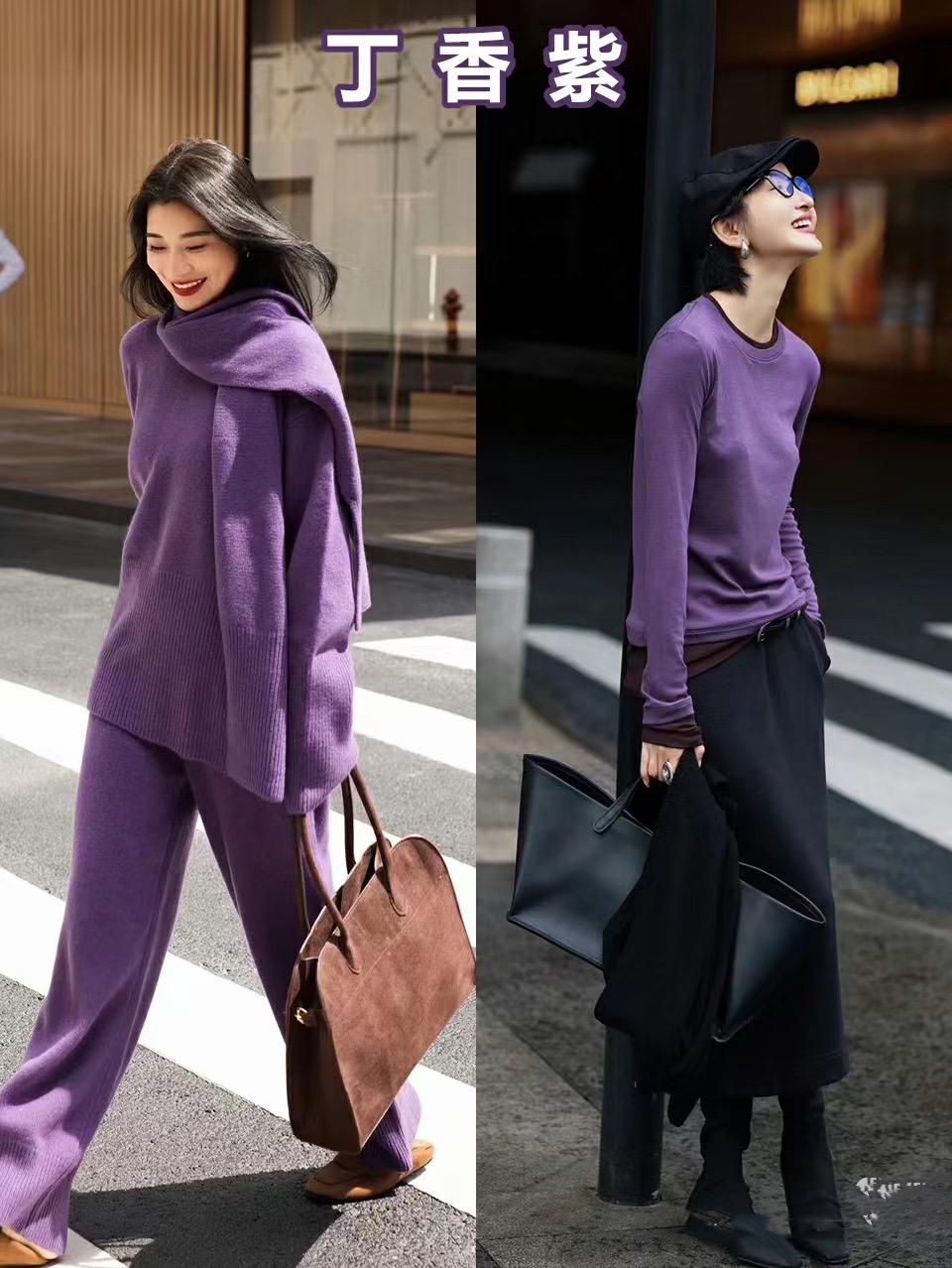 丁香紫可以贯彻全身,也可以选择一两件单品,这种饱和度高的颜色,并不那么挑人,显白但更容易驾驭。