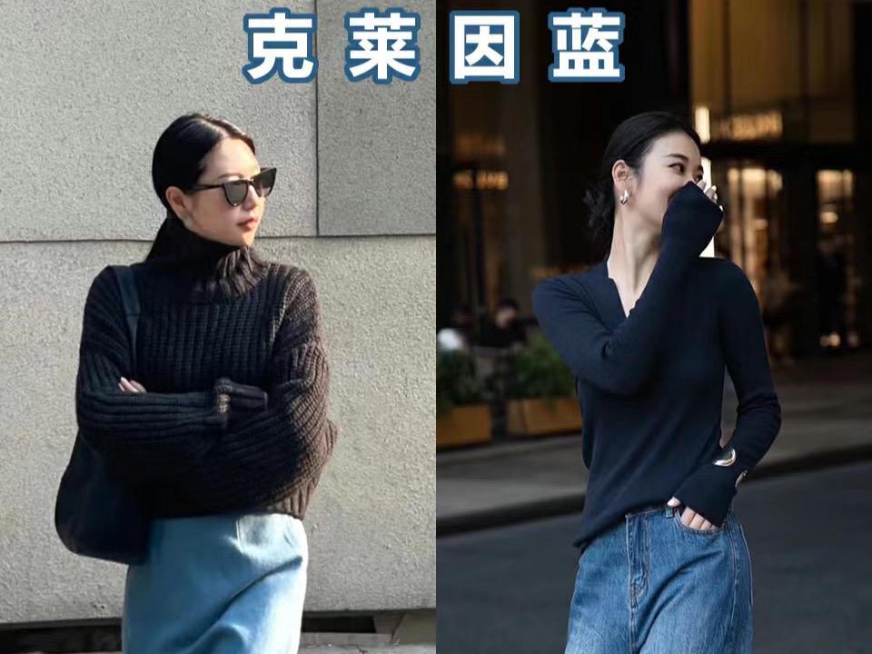饱和度高的蓝色系,就特别适合秋冬季节。不那么轻浮、更沉稳内敛。深蓝色的针织衫、毛衣、牛仔裤都很实穿显白。