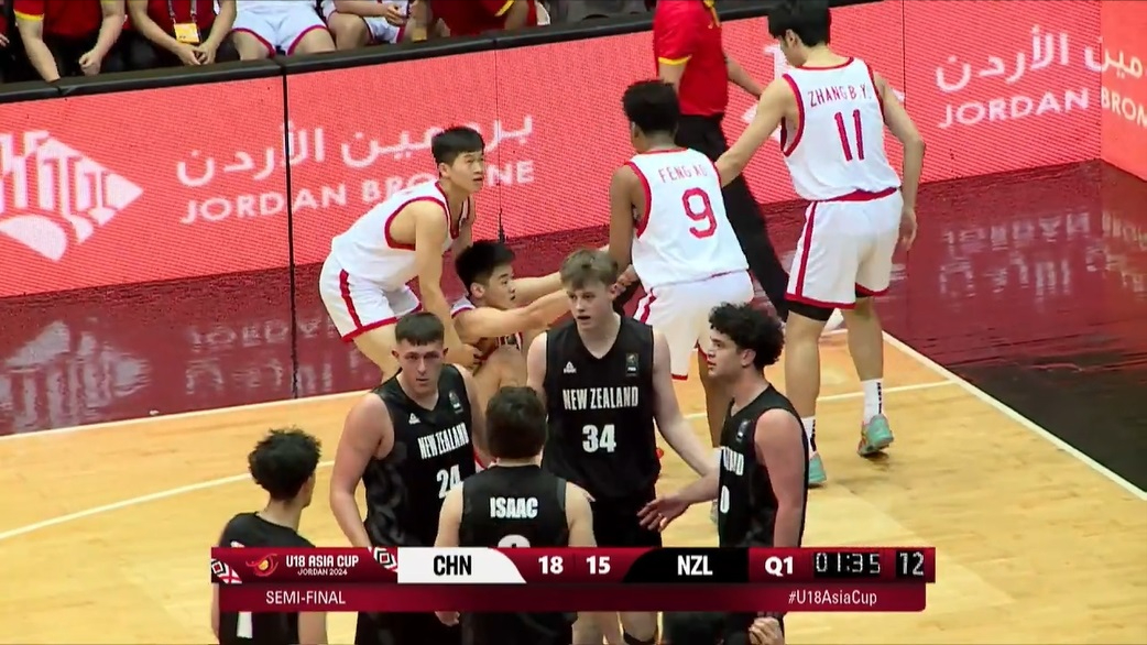 开场之后,两队的比拼非常胶着,新西兰队不断地利用突破和内线的优势得分,而中国男篮U18的小伙子们内外开花,张博源手感火热,段睿骐里突外投连得五分,中国男篮以12:9开局,同时迫使新西兰U18叫出暂停。暂停回来,杨溢利用队友的挡拆,再次突破命中。