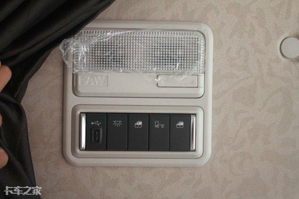 下卧铺头顶位置带有控制开关,依次是USB充电口,阅读灯,主驾驶侧车窗升降开关,天窗控制开关和副驾驶侧车窗升降开关,满足了日常的种种使用需求,设想一下,你特别累躺在下卧铺上,有些凉,要关窗户,卧铺上有了这些开关就很方便了。