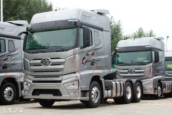 该款解放J7搭载锡柴CA6DM3-55E52 550马力直列6缸柴油发动机,排量为12.52L,满足国五/欧五排放标准,最大马力550,最大扭矩2300n.m,最大输出功率407KW。