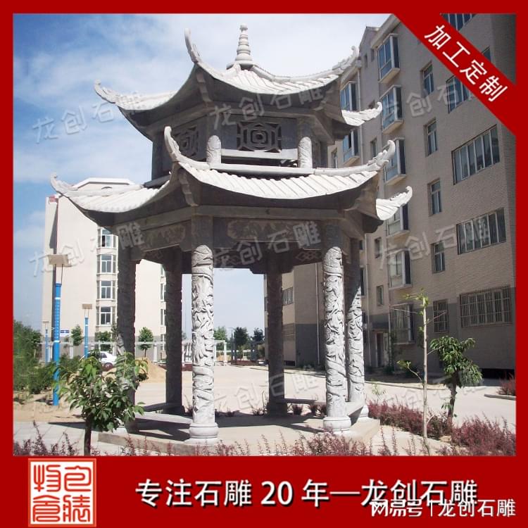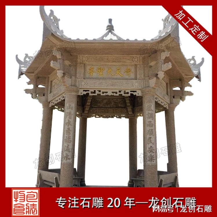 历史人物:一些石雕凉亭也会雕刻历史人物的图案,如孔子、老子、岳飞等。这些人物代表着智慧、道德、忠诚等品质,通过雕刻他们的形象,可以传承和弘扬中华民族的优秀传统文化。