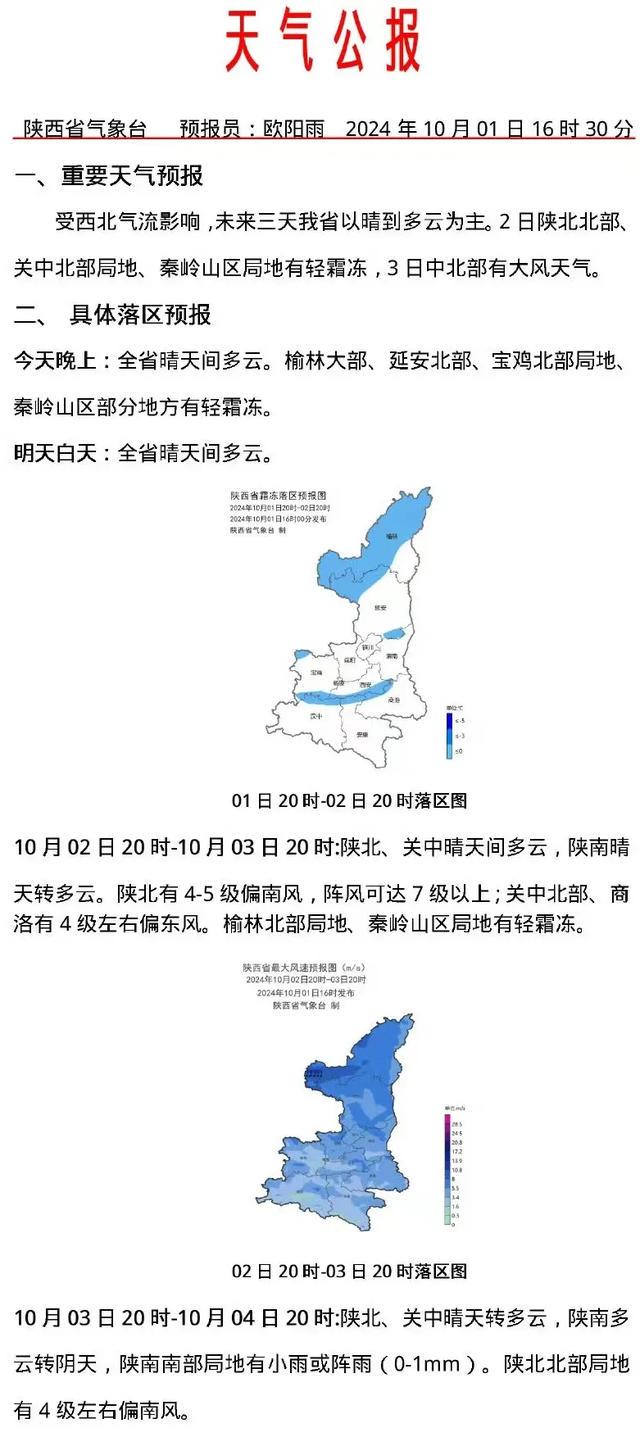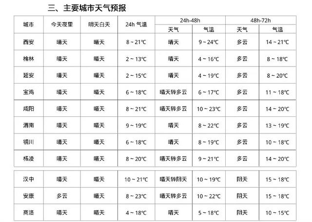 受西北气流影响,未来三天我省以晴到多云为主。2日陕北北部、关中北部局地、秦岭山区局地有轻霜冻,3日中北部有大风天气。