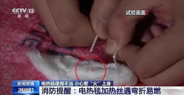 大多数电热毯火灾都是由加热丝发生断裂或接触不良产生高温导致。