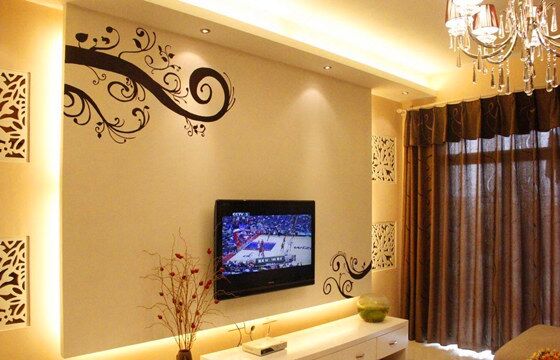 电视背景墙造形要避免有尖角、突出的设计,尖角容易形成煞气,对家运造成不利的影响,所以,尽量不要对背景墙进行毫无意义的凌乱的分割。电视背景墙适合采用圆形、弧形或平直无棱角的线形为主要造型。