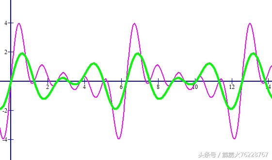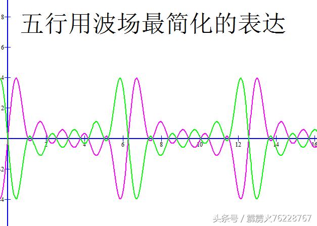 还能再简化吗?再简化就是八卦的波场表达了。下图中绿色波为八卦的波场表达,与五行的一个波场进行比对。