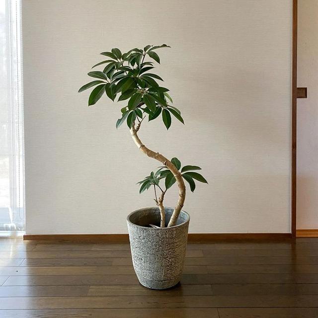 相比鸭脚木和昆士大叶伞,日本大叶伞的枝条会更加柔软,它的树干就容易弯曲,很适合塑造一些比较独特的形态。