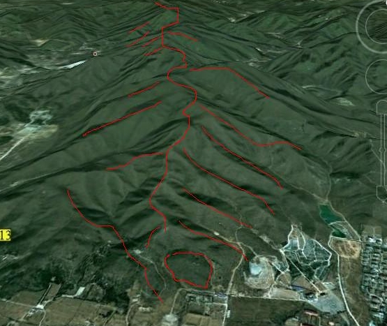 过去的四合院,寺庙,对着大门都有影壁,现代人装修的时候也比较重视玄关的设计,影壁和玄关都是应风水而产生的,而不单单是为了好看漂亮。它们的作用就是避免直通,阻挡正面冲撞而来的煞气。墓地如何挡住煞气呢,风水原理主张“直则冲”、“曲则顺”,道路要屈曲,山水要蜿蜒,就是弯弯曲曲。曲径通幽不仅有风水所讲的实际效果,而且还具有独特的艺术效果,如江南的园林建筑,都体现了这一审美心理。通往凤凰山陵园的道路因山就水,从卫星照片上看,有如北斗七星连在一起,正所谓:山重水复疑无路,柳暗花明凤凰山。“左青龙右白虎,前朱雀后玄武”恐怕是人们在墓地听到比较多的话,这是风水对墓地的周边地形的总结,实际上就是四面环山,中间是一个宽敞的盆地,风水所讲的“穴”就在这个盆地里,四面的山风水上叫做“砂”。这个地形在前面说到的“ 葬”字上也有体现,就是葬字下面的“廾”(发音拱),意思是双手捧着,双手并在一起捧着,形成了一个中间凹陷的穴窝,古人认为这就是一个好的葬地,所以说葬字本身就体现了古人的殡葬观。凤凰山陵园背后的靠山,有利于抵挡冬季北来的寒冷,前面的朝山一个个山尖耸立,连绵不绝,犹似很多人立在前面,这种形势在风水上叫做“百官朝立”。朝山与陵园之间,还有一座小山,形似文书案,风水上叫做案山。陵园背靠居庸关长城,靠山和左山、右山构成了一个太师椅的形势,山中来水如一条玉带腰间横缠,远朝近案前面先是文书案,书案前面是百官朝立,所以很多人看到凤凰山陵园都认为把这里做墓地非富即贵,是理想的墓地,堪称墓地的典范