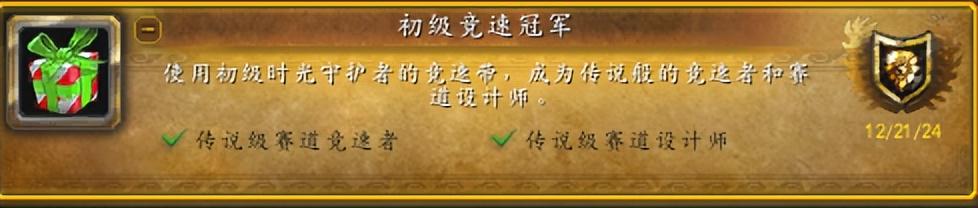 这个成就不需要冬幕节,但是需要冬幕节获得的:初级时光守护者的竞速带。获得方法小编另一篇文章写了,大概5分钟就能获得。
